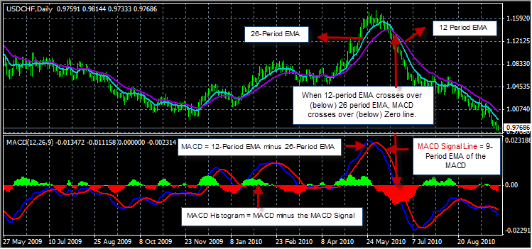 MACD は、移動平均クロスオーバーの遅れの問題を解決するもう 1 つの試みです。 単純移動平均と長い長さによって示されるように、シグナルまたはクロスオーバーが発生するまでに、動きはほぼ終了している可能性があります。 現在の市場に対してより敏感になるために、トレーダーは現在の価格をより重視する指数移動平均 (EMA) を開発します。 MACD は、標準期間 12 と 26 を使用して、速い期間の EMA と遅い期間の EMA の差を比較するため、計算に EMA も使用します。