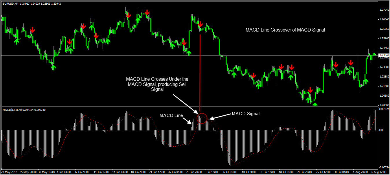 | MACD Crossover Alert | Green Buy Arrow: MACD line crosses over the MACD Signal Line Red Sell Arrow: MACD line crosses under the MACD Signal Line. |