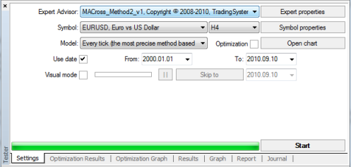 p>< p>전문가 자문을 백테스트하려면 전문가 자문, 티커, 기간(원하는 기간), 모델(예: 모든 틱)을 선택하고 사용 날짜 상자를 선택한 다음 날짜 범위를 선택하세요. 백테스트를 시각적으로 살펴보려면 시각적 모드를 선택하세요. 전문가 조언자의 논리를 확인하고 오류를 찾는 데 훌륭한 도구이지만 실행하는 데 더 많은 시간이 걸리기 때문에 단기적인 과거 샘플에만 사용하고 싶을 것입니다. 최적화를 선택 취소합니다.