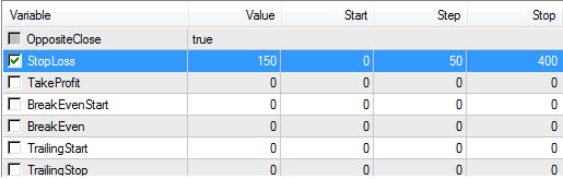 현재까지 최고의 MACross 전략 중 하나인 25-250 SMAcross(H4)를 선택하고 정지 손실을 0(손절매 없음)에서 설정해 보겠습니다. 여기에서 볼 수 있듯이 단계 크기가 50인 500까지: