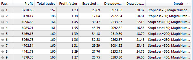 일반적으로 정지 손실 규모를 결정하는 가장 좋은 방법은 전략에 따라 최적화하는 것입니다. 모든 MACross 실험에서 저는 항상 150핍의 스톱로스를 설정했습니다. 왜냐하면 그러한 스톱로스가 H4 기간의 추세 추종 전략에 가장 적합하다는 교육받은 추측을 갖고 있기 때문입니다. 경험에 근거한 추측이 시작하기에 가장 좋은 곳이지만, 그것이 유효한지 확인해야 합니다.
