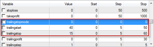 트레일링 모드=1, stoploss=0 , trailingstart>0, trailingstop>0
