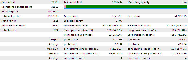 测试账户大小为 10,000 美元,手数为 0.1,由于止损为 150 点,最大亏损交易为 150 美元,或账户大小的 1.5%。