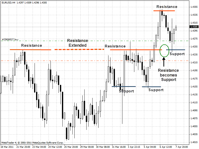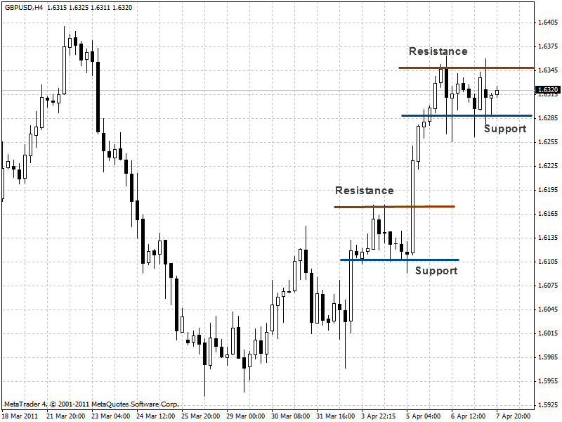 一旦阻力被打破,就必须在更高的水平上建立另一个阻力,也许是在以前的阻力上。 此外,一旦阻力被打破,它就会成为新的支撑。 这个新的支持可以充当你的朋友,以便在趋势方向上进行反弹交易。